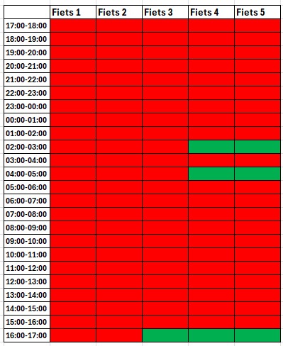 ![]() ![]() De groene vakjes zijn nog beschikbaar, de rode zitten al vol! Stand per 08-02-2026 | ||